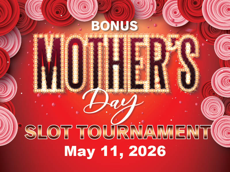 Give Mom one more special day! Join us for a FREE Bonus Mother’s Day Slot Tournament on Monday, May 11th! Sessions begin at 9:30am.