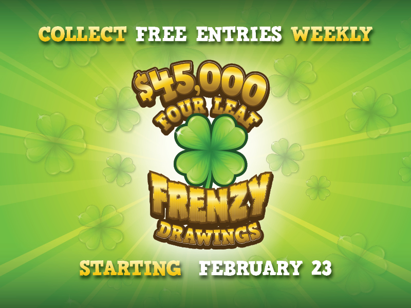 It’s said that one clover in five thousand has four leaves, so if you find one, you’re lucky! If you find one while playing “Four Leaf Frenzy” at Chinook Winds, your luck wins you a share of over $45,000!