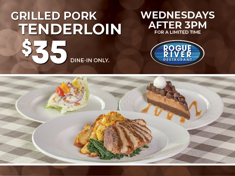 Wednesdays after 3pm in the Rogue River Restaurant, enjoy a sumptuous three course meal for just $35!